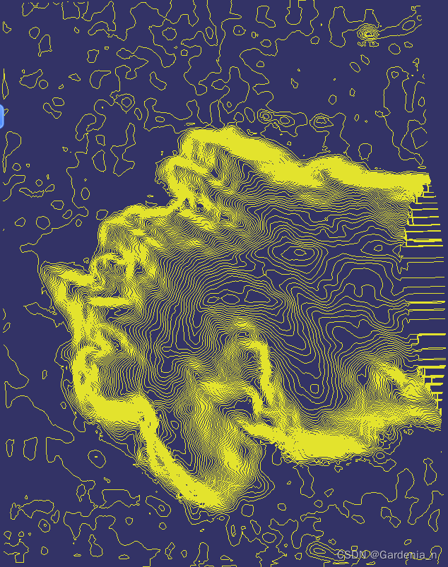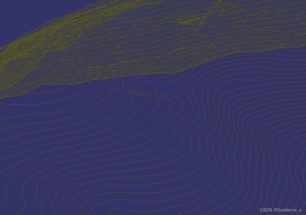 但是在俯视图中可以看出,右侧有一部分等高线出现了异常,可能是无效值处理的时候导致的问题。