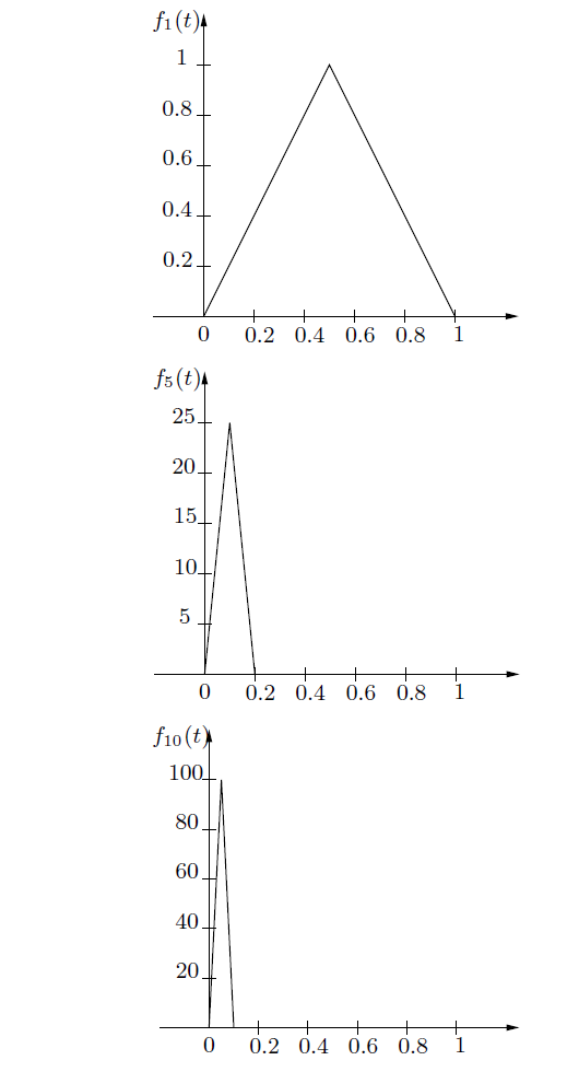 的图像从1/n 到1 都是 零,而对于 0 ≤ t ≤1/n ,