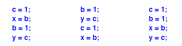 对于给定的线程集,存在许多顺序一致的可能执行顺序。例如: