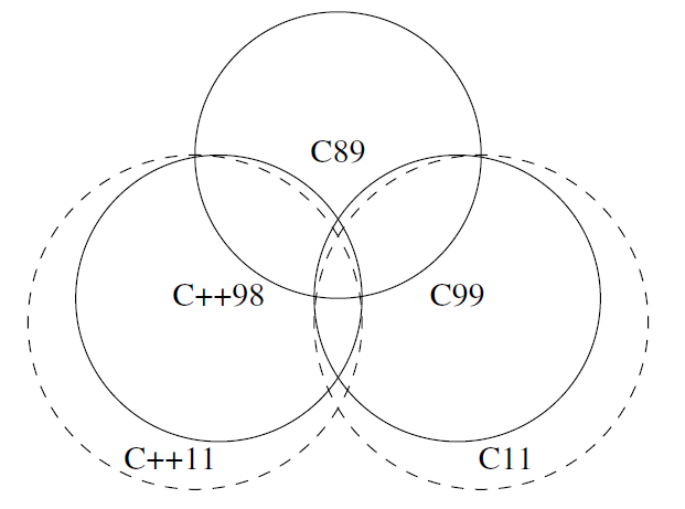 与 C89 相比,C99 中的一些新增特性被 C++ 有意地排除在外,没有被采纳: