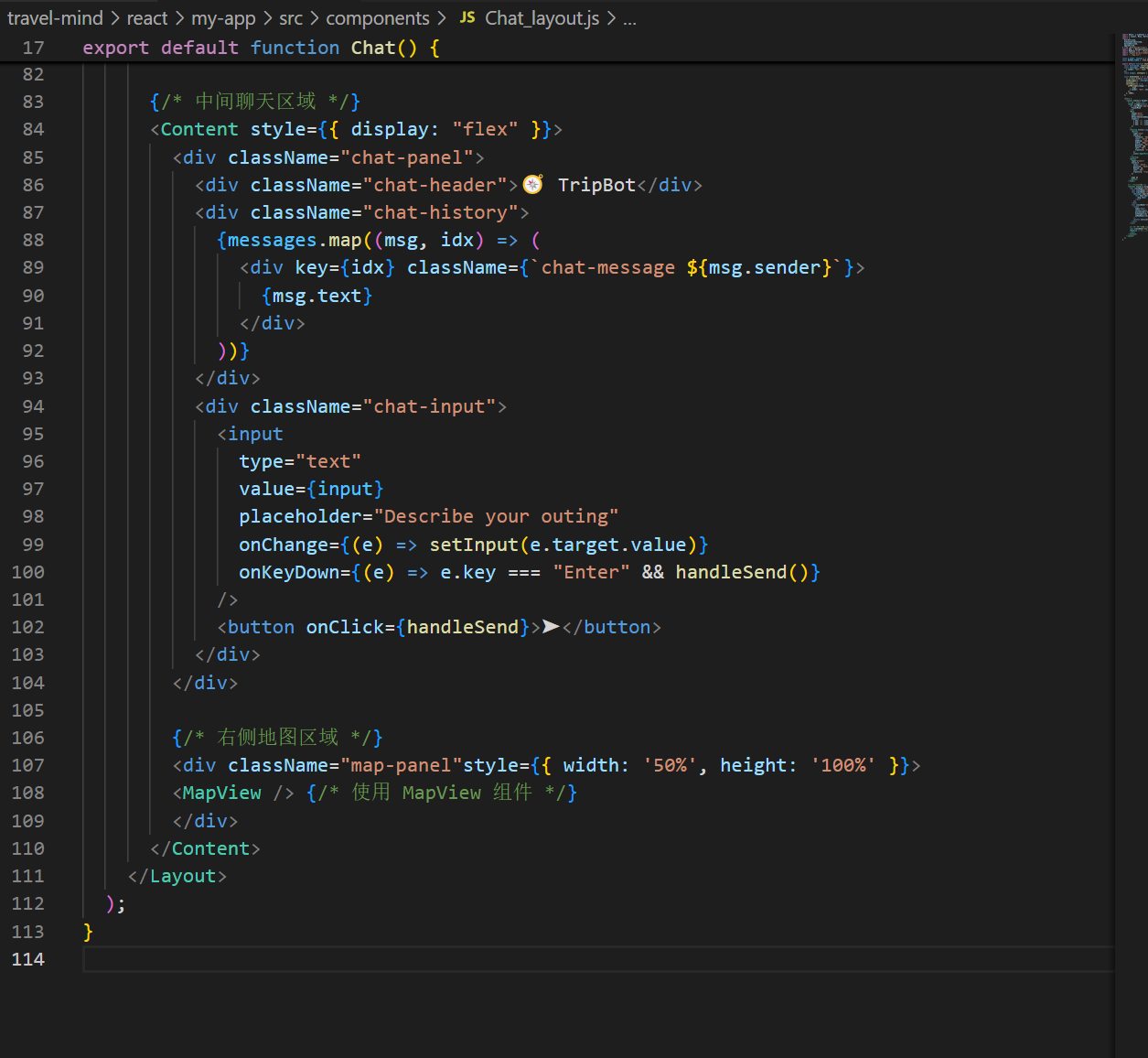 在chat_layout中在右侧添加区域,并导入mapview组件