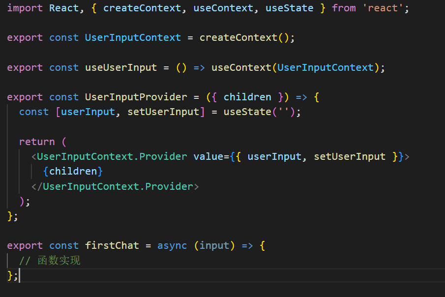 在获取用户的输入时,由于用户的输入在不同的组件中,所以在其他的组件中获取用户的输入非常麻烦,所以创建了一个全局的上下文,用于共享和管理用户输入,以便在实现其他功能时方便获取用户的输入。