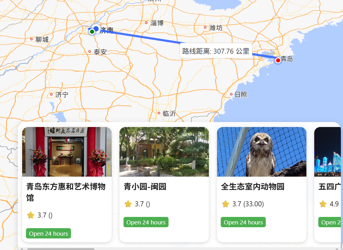 本阶段进行的工作包括结合对之前路线绘制功能进行优化以及通过用户的输入实现对目的地景点的推荐。