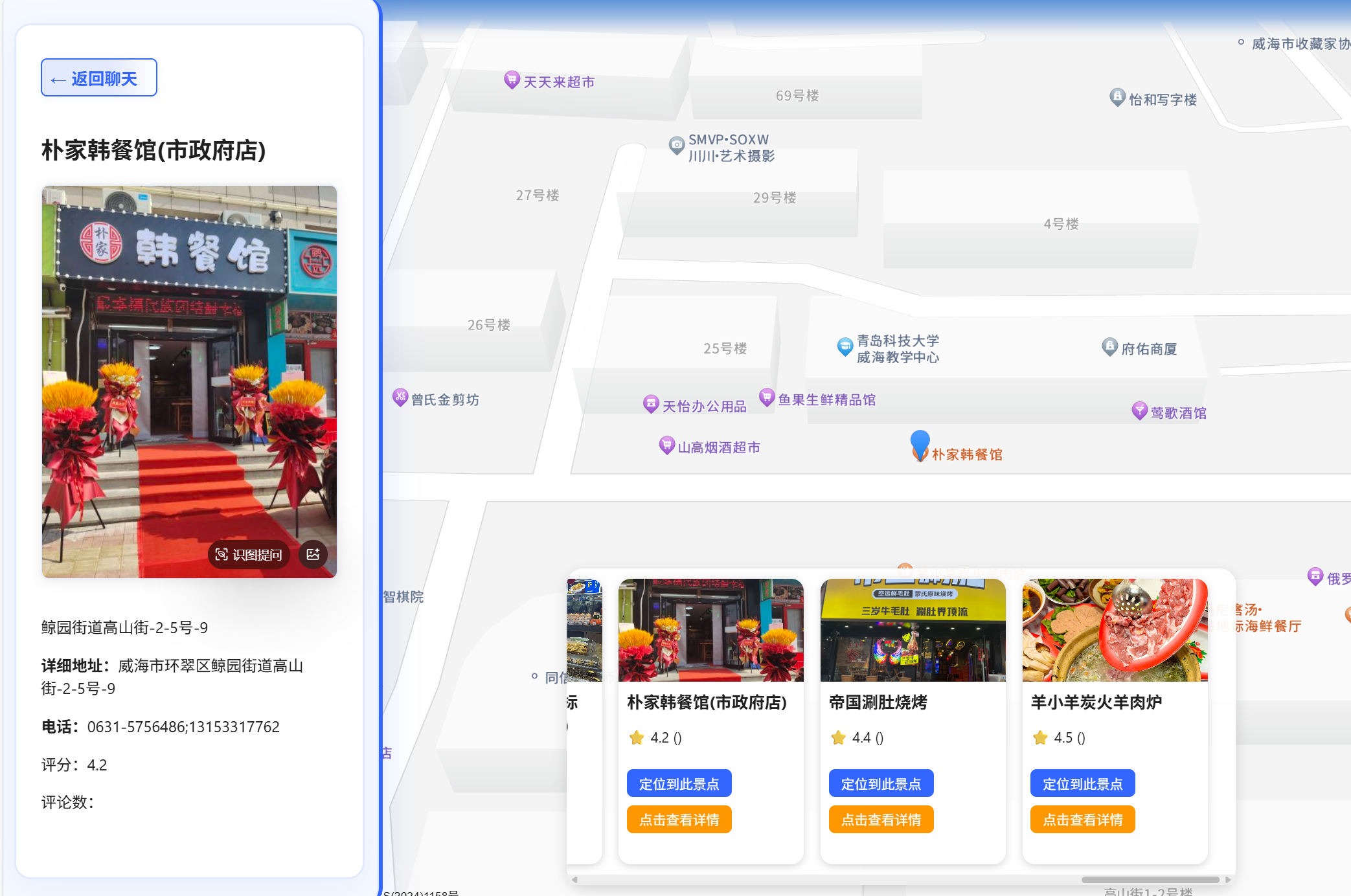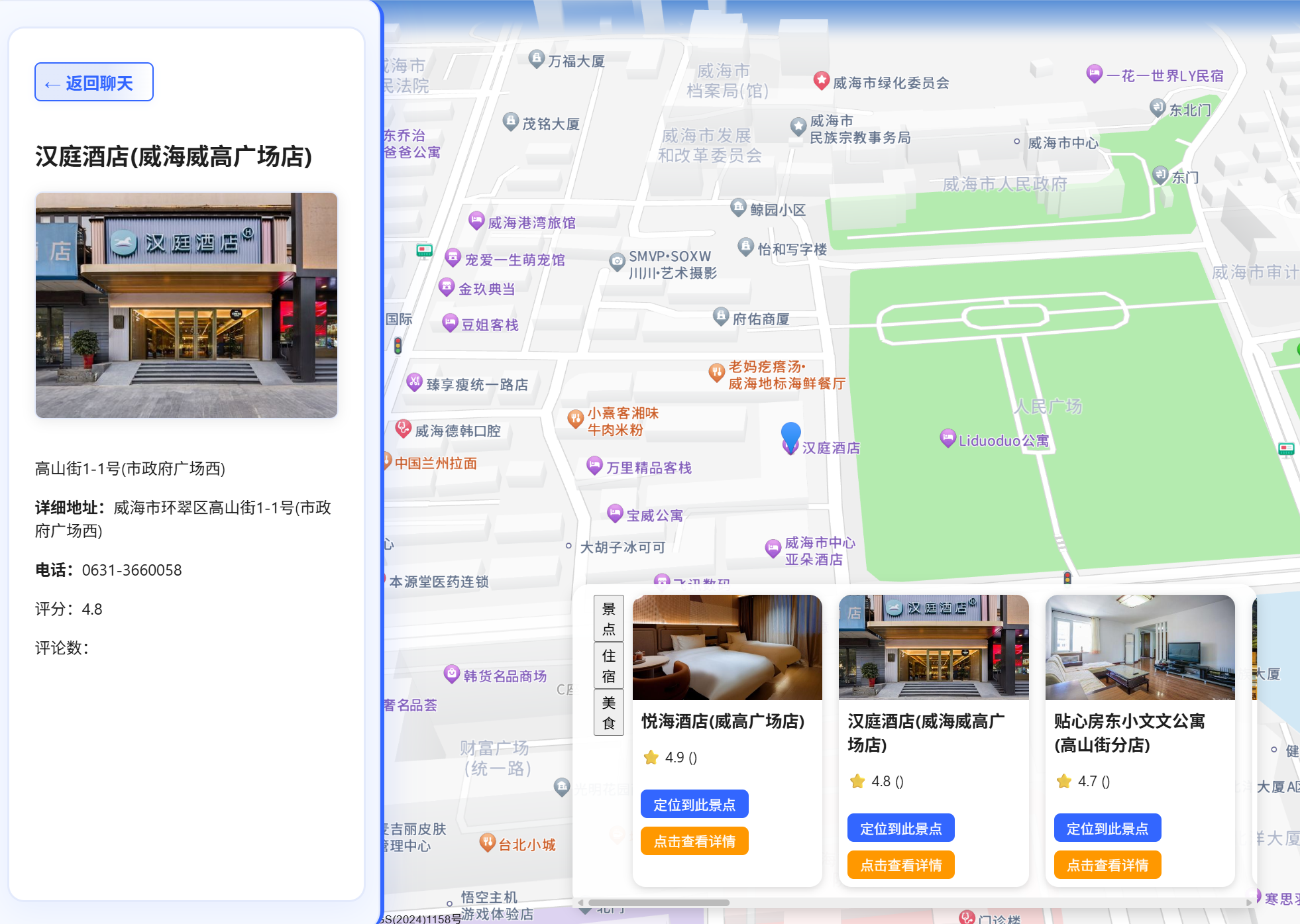 让用户不仅能获取景点推荐,还能一键切换查看住宿和美食,提升出行决策效率。