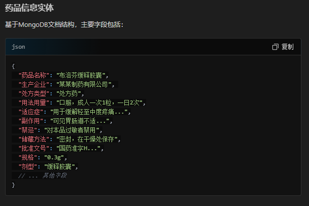 支持字段:成分、功效、用法、禁忌症、适用对象、药物相互作用等。
