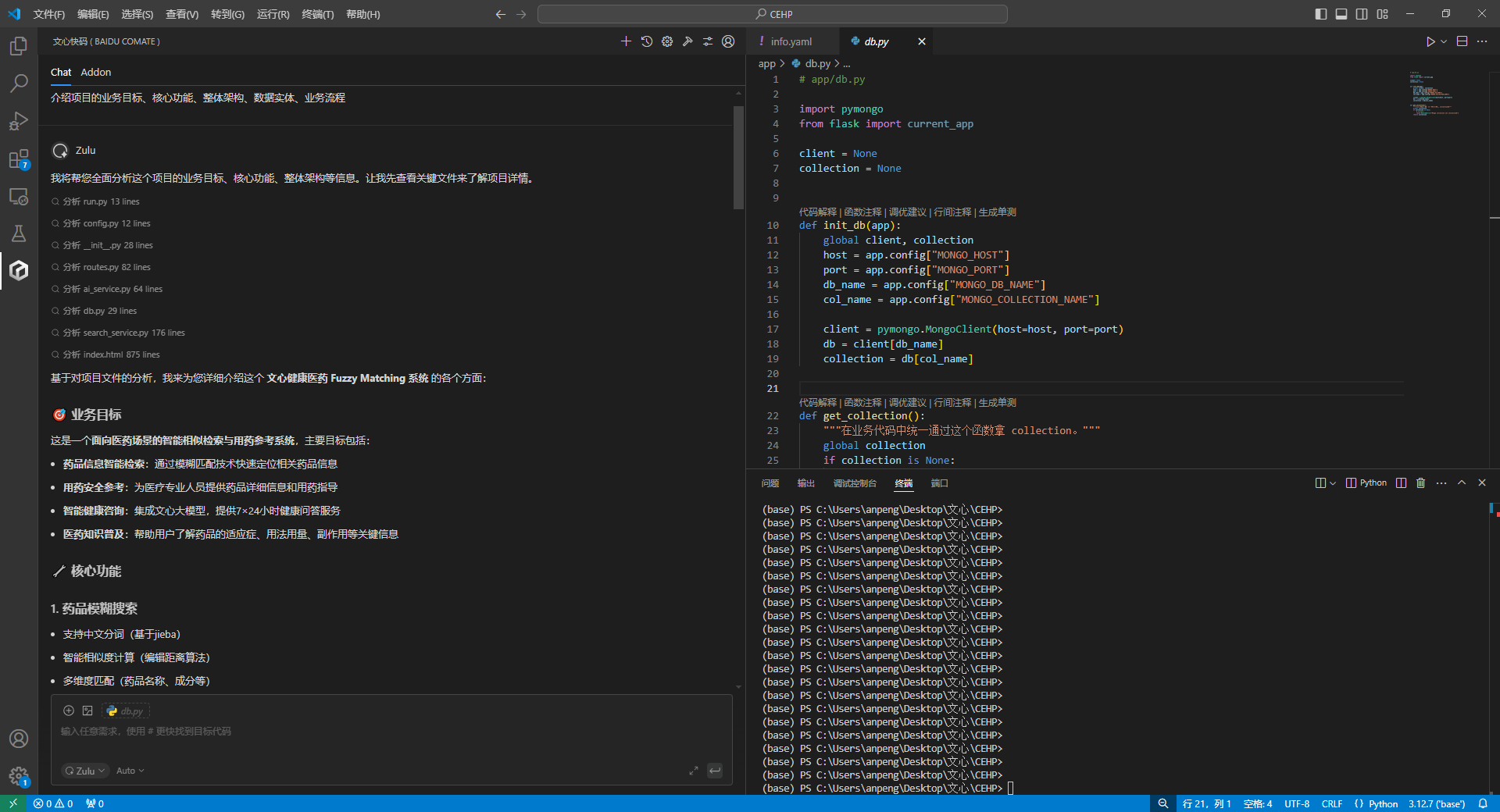 感谢 Comate 提供的项目整体分析能力,为本项目在需求梳理、代码结构优化、业务流程推理和架构设计方面带来了极大的助力。模型在药品信息处理、健康知识抽取和模糊匹配策略优化上的智能分析,使整个系统的开发过程更加高效。