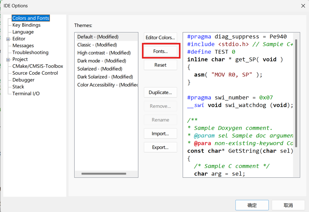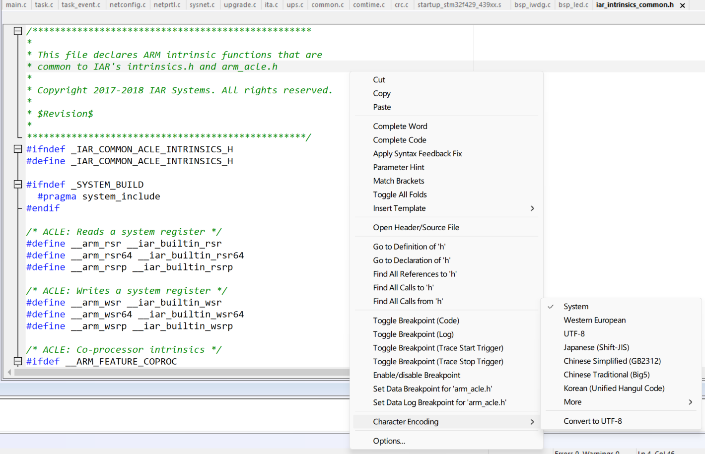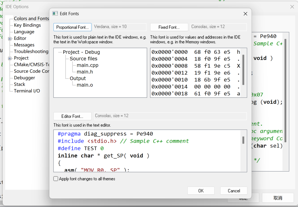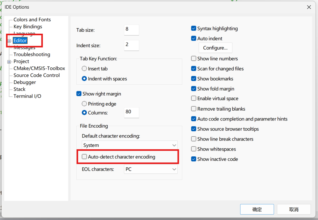 第四步:点击侧栏Editor,选择Default character encoding(默认字体编码)为System,取消勾选Auto-detect character encoding(自动检测字符编码)部分,接下来重启IAR,字体即可正常显示!