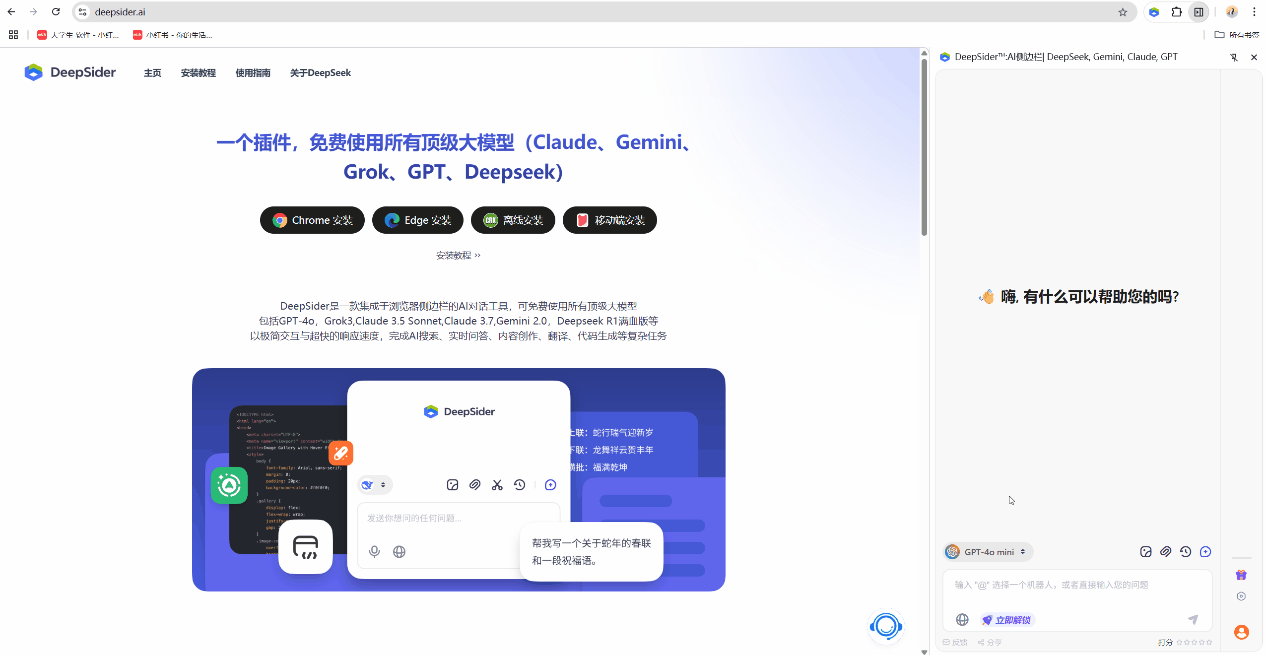 DeepSider,让人人都有可用的Claude+Gemini+GPT+Grok。