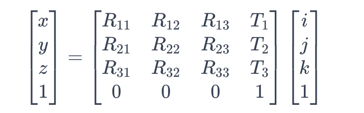 这个仿射矩阵允许将体素坐标 ((i, j, k)) 映射到物理空间坐标 ((x, y, z))。具体地说,对于一个三维体素坐标 ((i, j, k)),物理空间坐标 ((x, y, z)) 的计算方式如下: