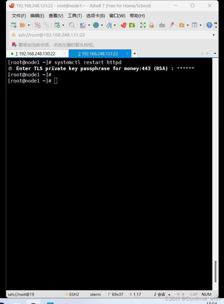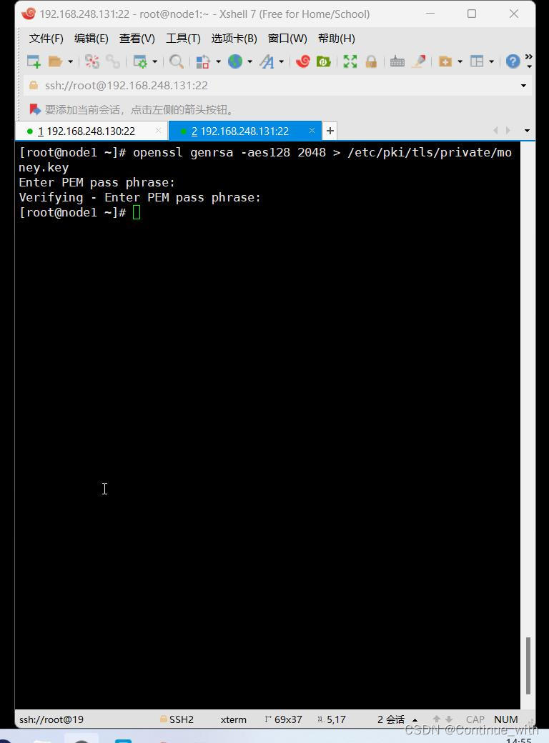 [root@node1 ~]# openssl genrsa -aes128 2048 > /etc/pki/tls/private/money.key