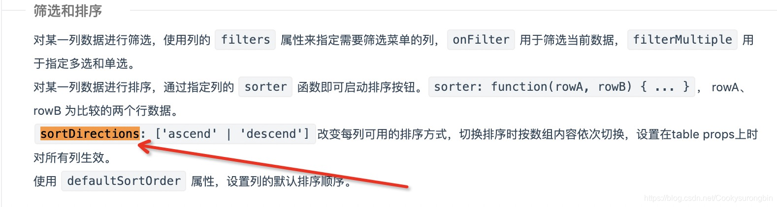 2、在表格直接设置sortDirections