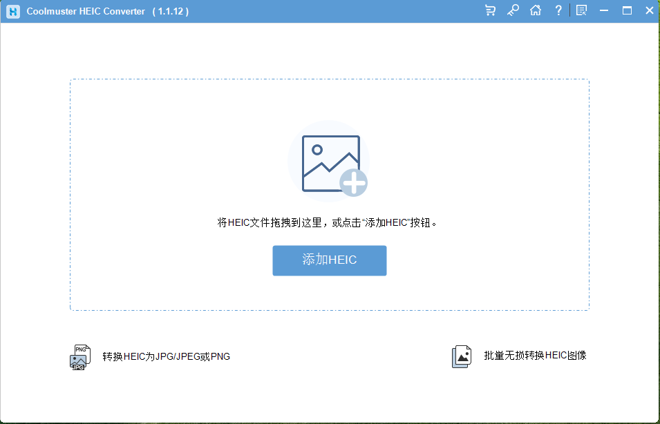 2:点击“添加 HEIC”导入您想要转换的 HEIC 图像。或者,您也可以直接将 HEIC 图像拖放到界面上。