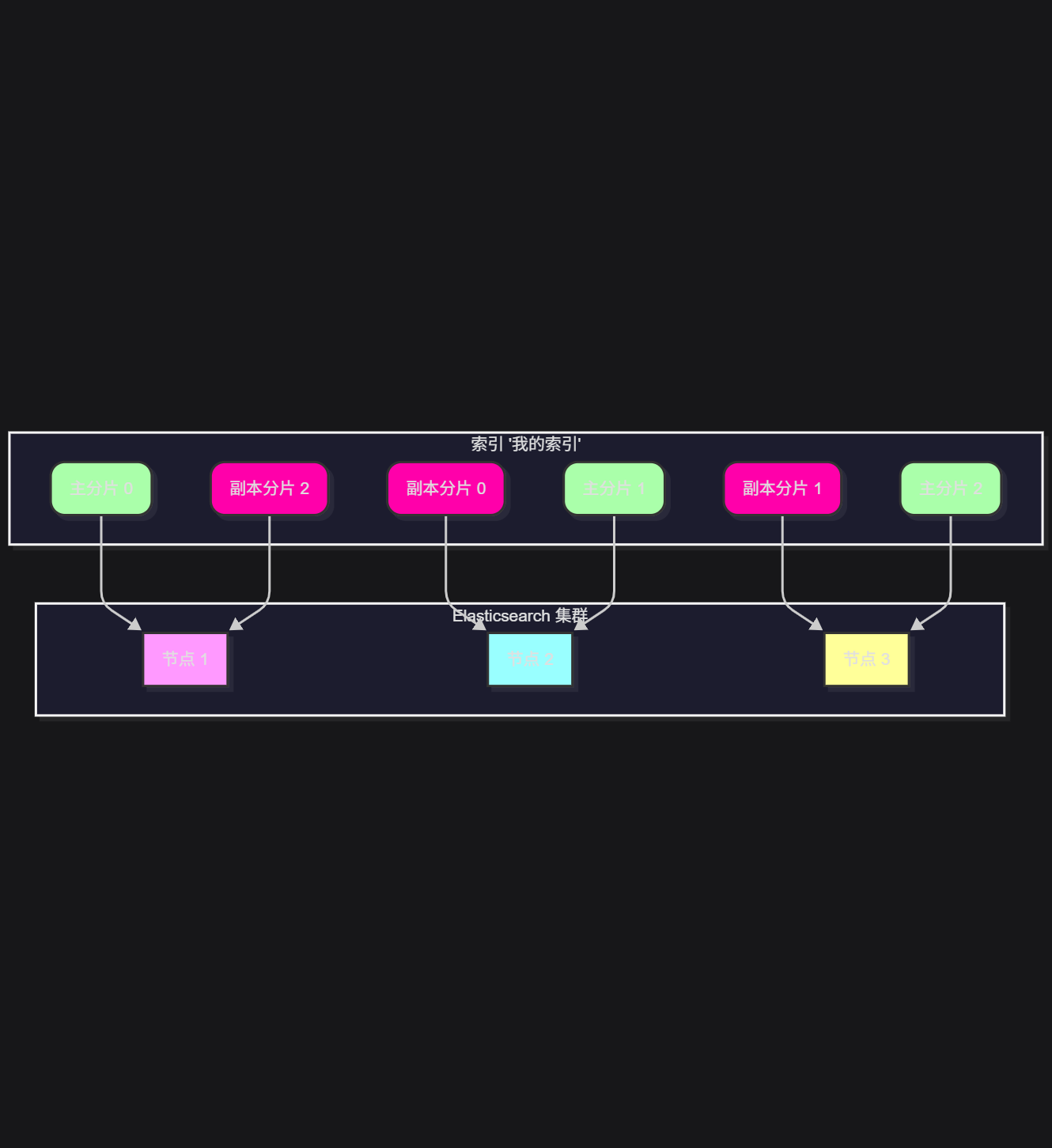 图清楚地展示了Elasticsearch集群里分片和副本是怎么分布的。主分片分散在不同的节点上,而它们的副本呢,则被放在了跟对应主分片不同的节点上,这样就能保证数据有备份,而且还不容易挂掉!