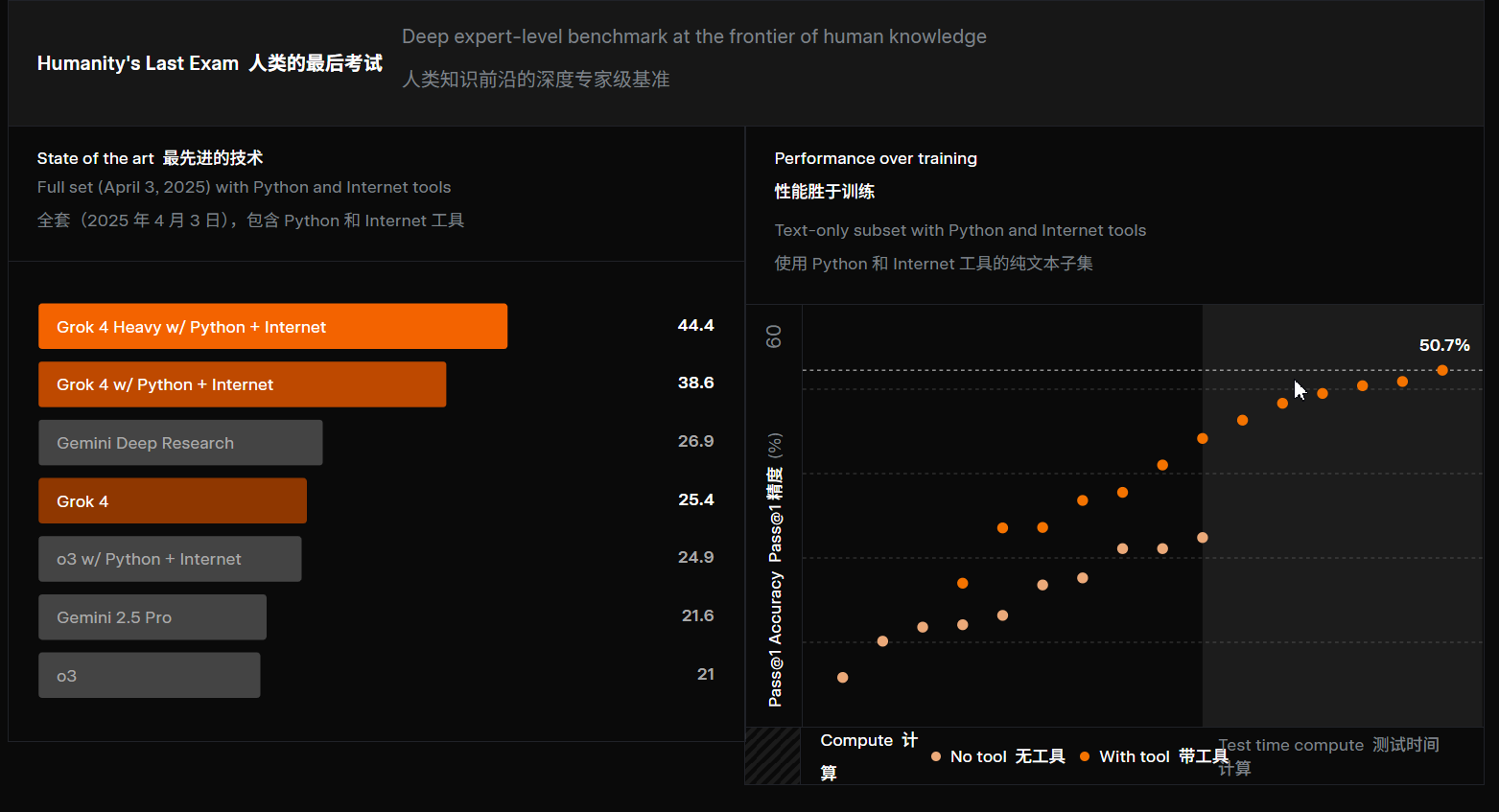 - Grok4 Heavy(使用工具):44.4%