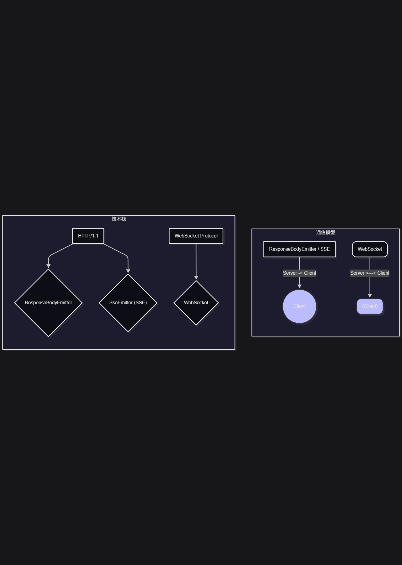 结论:杀鸡焉用牛刀。对于只需要服务器向客户端单向推送信息的场景(如进度条、数据流),ResponseBodyEmitter 或 SseEmitter 是更简单、更合适的选择。