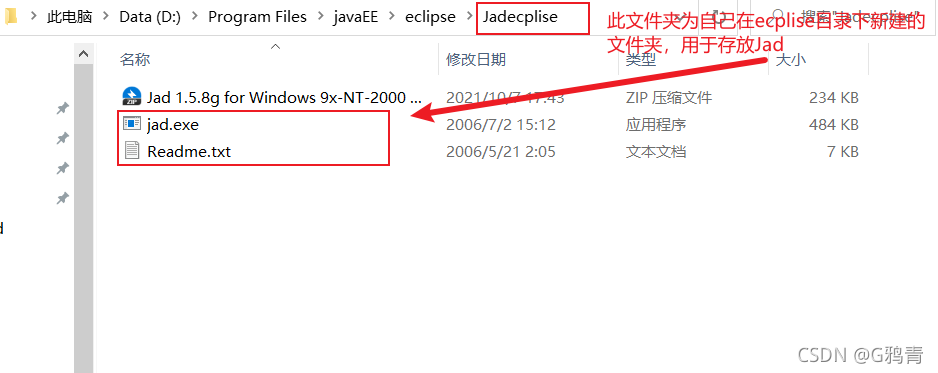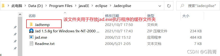 第三步:下载Jad.exe,并在eclipse的安装目录下新建文件夹并把此压缩包解压到其中