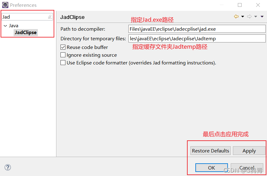 1.在eclipse中指定Jad.exe路径,和缓存文件夹Jadtemp的路径。