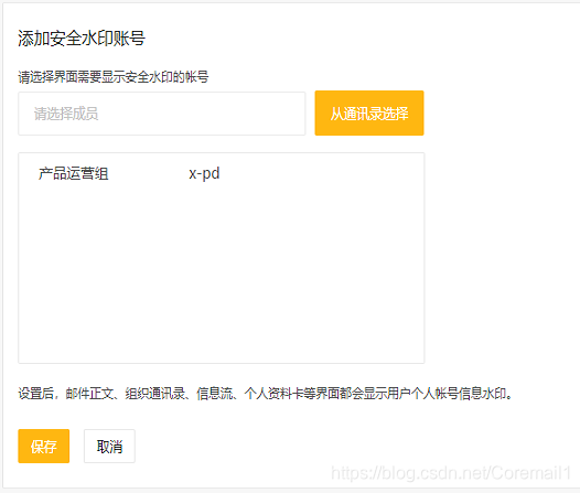 - 界面安全水印:支持在邮件正文、组织通讯录等界面有个人账号信息水印