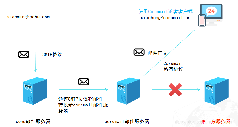 员工使用第三方客户端登录其他邮箱账号时,部分第三方服务器需要代收邮件才能推送到第三方客户端,在这个传输过程中,邮件数据极易遭到泄露风险。而使用Coremail论客客户端接收邮件,无需经过第三方服务器,邮件信头会通过lunkr服务器进行推送,但邮件正文内容不会经过,更不会保存,让企业数据能自主把控。