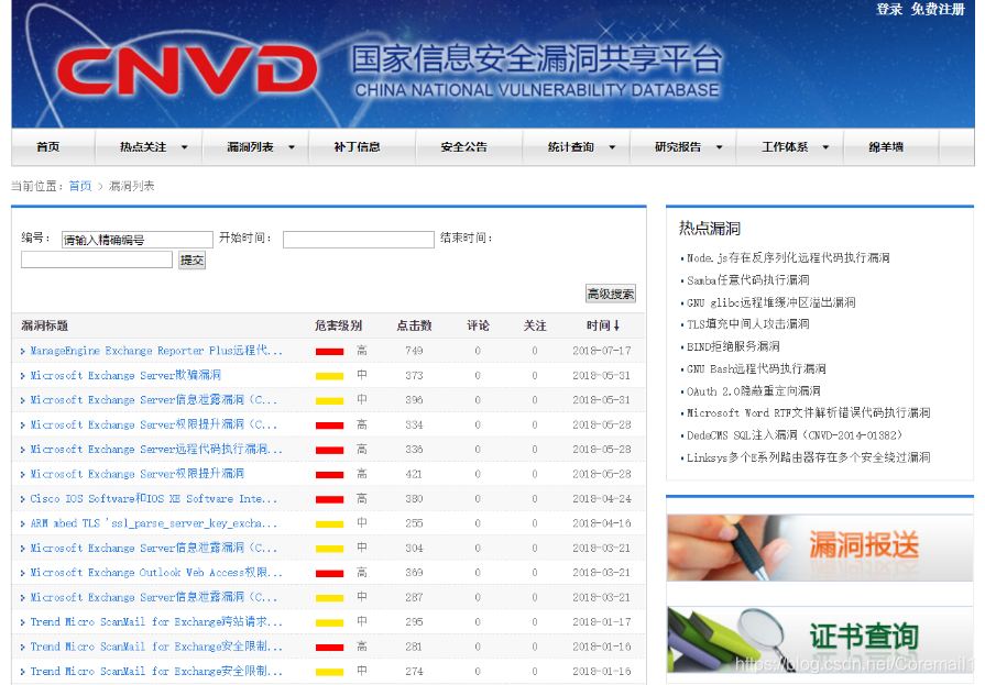 截至2018年10月,国家信息安全漏洞共享平台监测到Exchange今年有7个高危漏洞,7个中等危害漏洞。如下图所示: