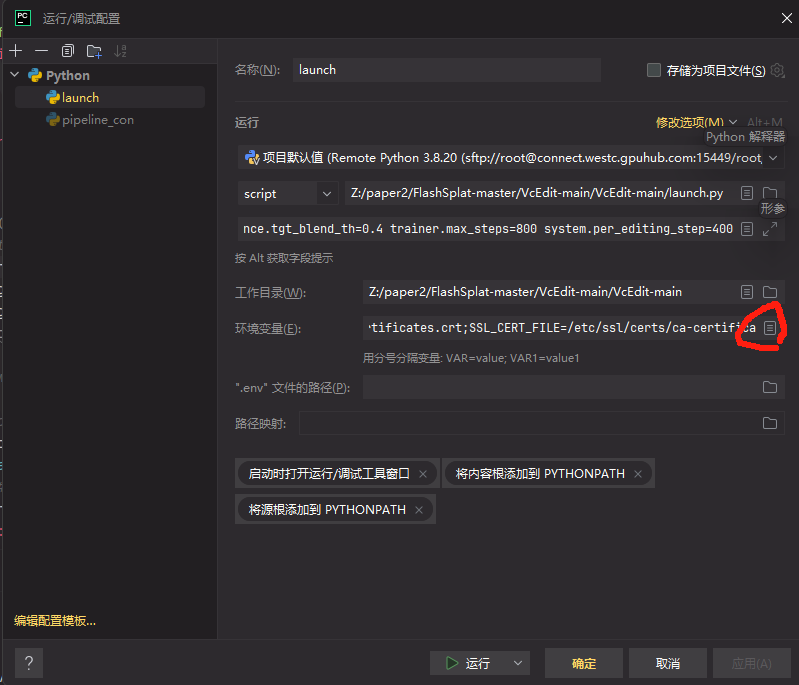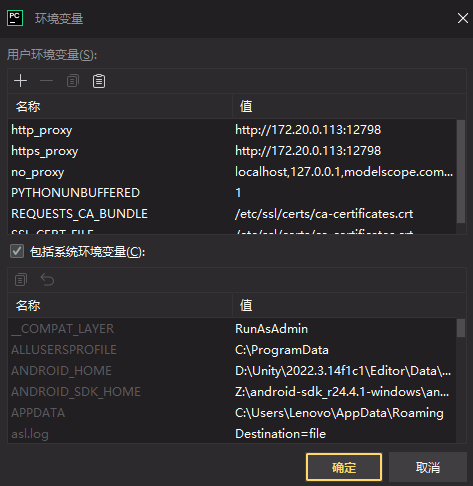 为解决这个问题,我们需要在Pycharm的环境变量中加入学术加速配置