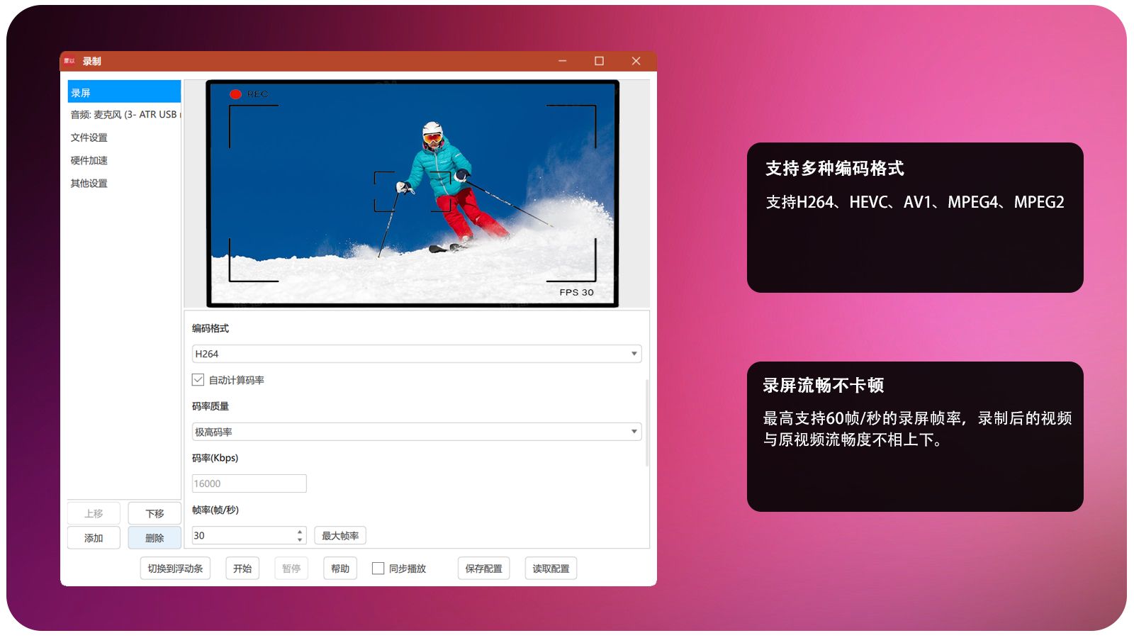 - 窗口录制:可以单独录某个软件窗口,还能调高级参数。