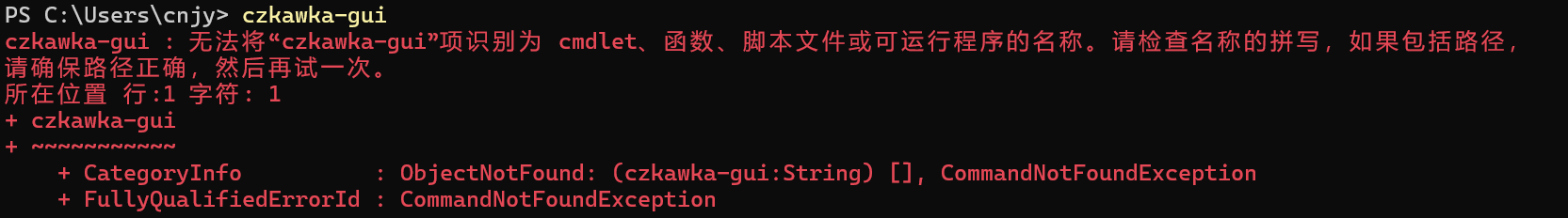 czkawka_gui报错中,出现 “无法将 czkawka-gui 识别为 cmdlet…” ,说明