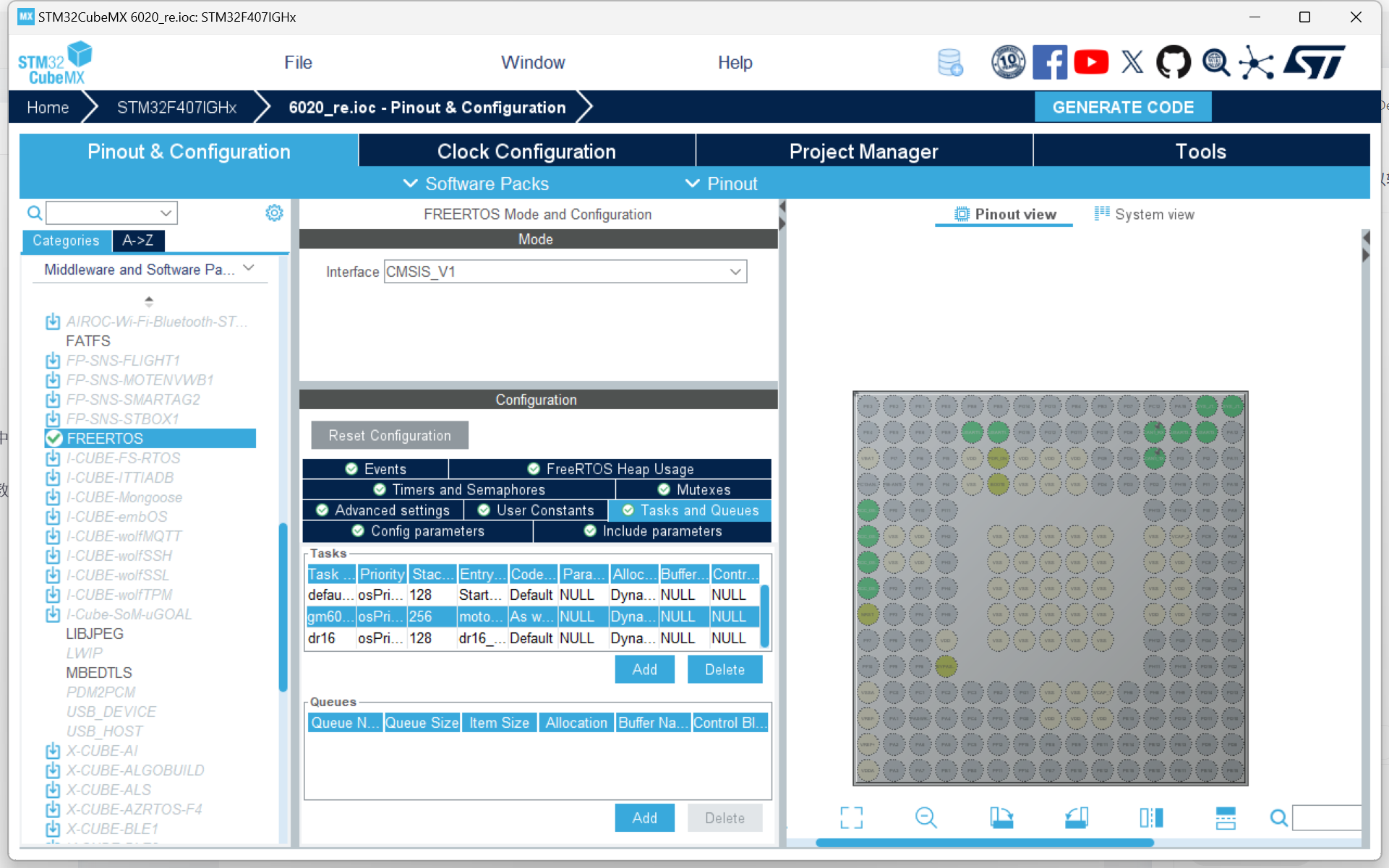 我们可以把问题主要拆解成三个部分:1.编写代码实现控制器(C板)接收用户数据,并发送给电机。2.用一种算法使电机不断的向目标值靠拢,为了更好的调试,我们配置freerrtos。3.用遥控器实现对电机的控制