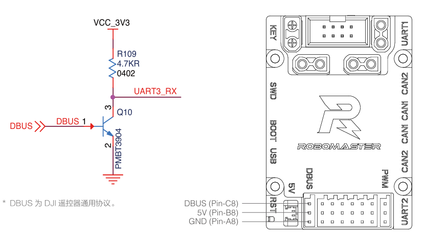 波特率一般为100kb/s。我们打开C板用户手册,可以知道在C板的USART3上配置。