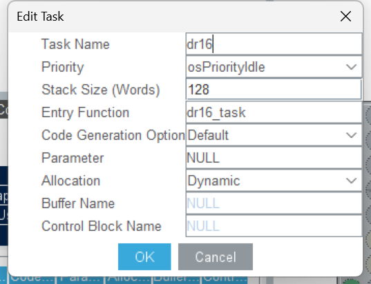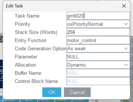 然后在task中添加gm6020和dr16两个任务,任务参数如下: