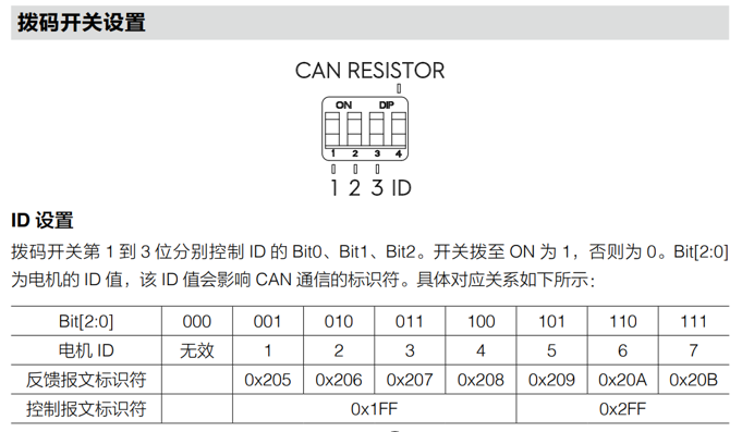 这一段函数的功能是单片机和电机内部的电调构建联系,我们知道6020是高度集成的电机,即电调是集成在电机内部,所以我们得查阅电机的官方手册对其ID进行接收以及发送