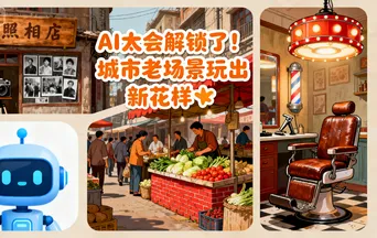 现在的 AI 早就盯上城市里的 “老牌场景”,给它们注入科技新灵魂 —— 帮老照相馆拍 “复古 + 智能” 写真、让老菜市场买菜更高效、给老理发店做 “私人定制” 升级,把看似 “过时” 的老地方,玩出潮流感 + 实用性双重惊喜!