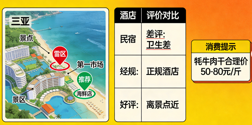 担心遇到天价美食、黑心导游、劣质住宿?AI来帮忙!输入目的地+出行时间,AI自动整理当地高频踩雷点,标注“避坑关键词+替代方案”,比如“三亚避坑:别在景区附近吃海鲜,推荐去第一市场(自行挑选+加工,性价比高);别信路边‘低价一日游’,建议选择正规旅行社或自由行”;针对住宿,AI筛选高评分酒店/民宿,标注“真实用户差评高频问题”(如“某民宿卫生差、隔音不好”“某酒店离景点过远”),帮你避开住宿翻车;还会提醒当地注意事项,比如“去西藏需提前准备抗高反药物,避免剧烈运动”“去泰国需尊重当地习俗,进入寺庙需脱鞋”。更实用的是,AI支持实时避坑查询,旅行中遇到不确定的消费(如“特产价格是否合理”“打车是否绕路”),输入问题就能快速获得答案,比如“丽江古城牦牛肉干合理价格为50-80元/斤,避免购买150元以上的”,让旅行消费更安心!