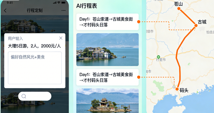 不知道怎么安排行程才合理、担心时间浪费在路上、想兼顾景点与休息?AI来救场!输入旅行目的地(如“大理5日游”)、出行人数(单人/情侣/亲子/家庭)、预算(如“2000元/人”)、兴趣偏好(如“自然风光/人文古迹/美食探店/小众打卡”),AI1分钟生成个性化行程表,按天拆分详细安排,标注“交通方式、景点开放时间、游玩时长、必看亮点”,比如“大理Day1:上午苍山索道(游玩3小时,建议早去避开人流)→ 中午古城美食街(推荐白族土八碗)→ 下午大理古城漫步(打卡五华楼、洋人街)→ 晚上才村码头看日落”;还会根据季节调整路线,比如冬季去哈尔滨,优先推荐“冰雪大世界夜场、太阳岛雪博会”,避开季节性关闭的景点。更贴心的是,AI支持行程微调,比如“想增加网红咖啡馆打卡”“减少人文景点,多安排自然风光”,只需简单指令就能快速优化,从此告别“照搬别人攻略”的尴尬!