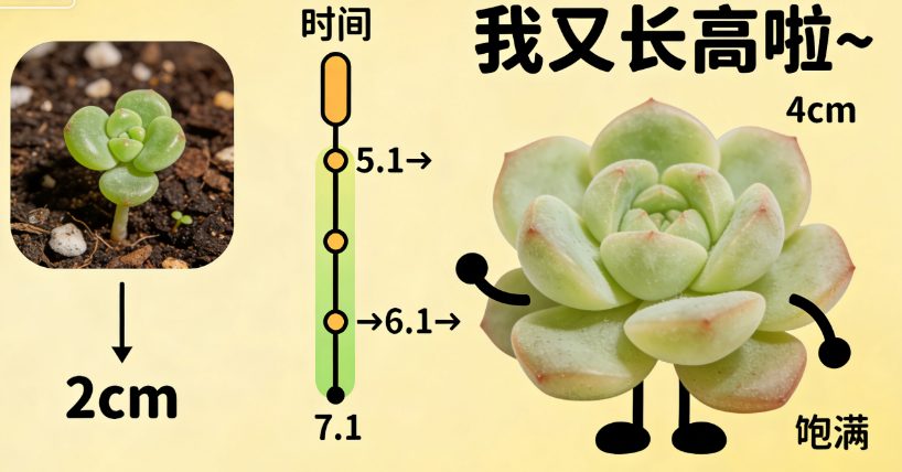 想记录植物从幼苗到爆盆的过程,却懒得每天拍照记录?想分享植物成长却没素材?AI来兜底!定期拍摄植物照片上传,AI自动生成“植物成长时间线”,标注拍摄日期、生长变化,比如“2025.5.1:多肉幼苗(2cm)→ 2025.6.1:长出2片新叶(3cm)→ 2025.7.1:叶片饱满(4cm)”;还能智能分析生长状态,比如“近一周多肉生长缓慢,可能是光照不足,建议移至阳台直射处”;生成趣味成长海报,比如“给绿萝做‘100天成长对比图’,搭配‘从小苗到爬满墙’的文字,适合发朋友圈分享”;支持设置养护提醒,比如“每周三给绿萝浇水、每月1号给月季施肥”,手机自动推送通知;更有趣的是,AI能根据植物生长状态生成拟人化文案,比如“今天我又长高啦,谢谢主人的照顾~”,让植物养护更有仪式感!