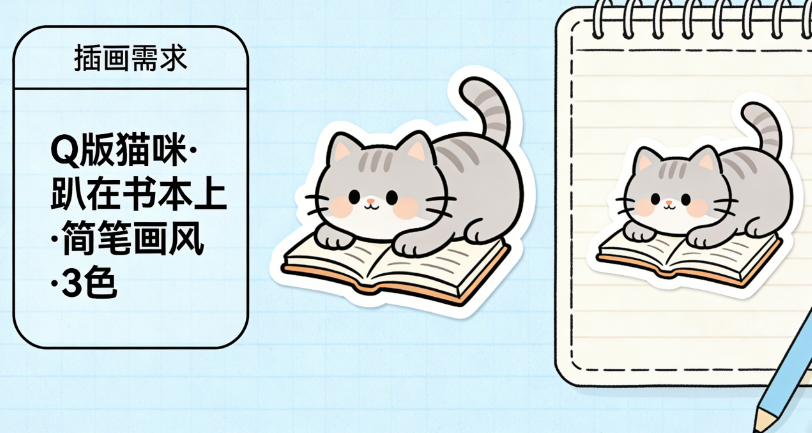 想在手账里画点小插画却没绘画基础?买的贴纸都是爆款,缺乏专属感?AI来兜底!输入插画需求(如“画一只趴在书本上的猫咪/画一杯冒着热气的咖啡/画简约的旅行行李箱/画可爱的节日元素”)、插画风格(简笔画/水彩风/卡通Q版/线条风)、颜色数量(单色/3色以内/多彩),AI1分钟生成专属插画,比如“旅行主题手账需求:简约线条风旅行行李箱,搭配小飞机、地图元素,单色黑色,线条流畅易临摹”;“美食主题手账需求:水彩风草莓蛋糕,色彩清新,细节丰富,可直接打印粘贴”;支持根据手账内容调整插画细节,比如“把猫咪插画的颜色改成和你手账主色调一致的浅灰色”;还能生成“主题插画套装”,比如“生日纪念手账专属插画套装:蛋糕、蜡烛、气球、祝福语插画,风格统一,直接就能用”;针对手残党,AI还会提供“简化版线稿”,打印后涂色即可,从此手账拥有专属插画,再也不用怕和别人撞款!
