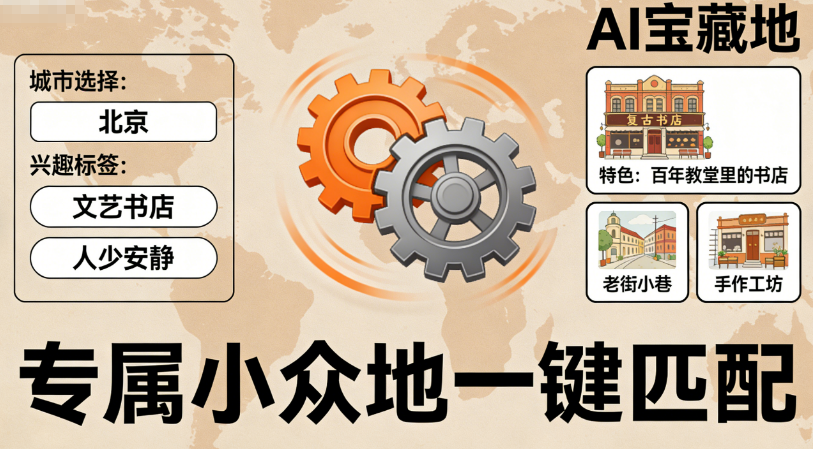 不知道自己所在城市有哪些小众玩法?想找特定风格的地方却没头绪?担心小众地不符合预期?AI来救场!输入所在城市、兴趣偏好(如“文艺书店/复古老街/小众咖啡馆/手作工坊/户外徒步”)、核心需求(如“人少安静/适合拍照/性价比高/亲子友好”)、出行时间(如“周末半天/工作日晚上/全天”),AI1分钟生成3-5个专属小众宝藏地,标注“特色亮点、适配理由、基础信息”,比如“北京+文艺书店+人少安静+周末半天:1. 模范书局·诗空间:藏在百年教堂里的书店,复古装修搭配宗教元素,适合安静看书、拍照;2. 码字人书店(和平里店):老厂房改造的独立书店,有大量绝版书和小众杂志,定期举办读书会;3. 纸上造物书店:主打手作和文创的小众书店,可体验活字印刷,适合文艺爱好者”;针对亲子家庭,AI优先推荐“亲子友好型”小众地,比如“隐藏在社区里的自然博物馆、可DIY的陶艺工坊”;还会标注“小众指数”和“避坑提示”,比如“某小众咖啡馆仅接受现场预约,建议提前电话确认”,从此告别盲目找地的烦恼!