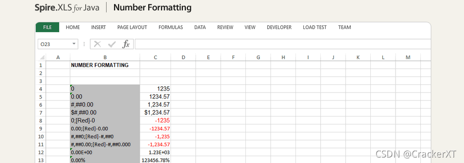 Spire.XLS for Java supports a rich set of Excel elements, including comment, pivot table, charts, shapes, tables, images, hyperlinks, reports, add digital signature, text/image watermark, Excel formula and many more. Spire.XLS for Java also embeds many flexible options for displaying worksheets, such as page breaks, zoom-setting, freeze panes, headers/footers, print excel files, print paper size and print area etc.