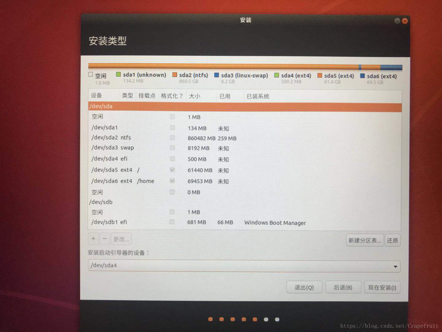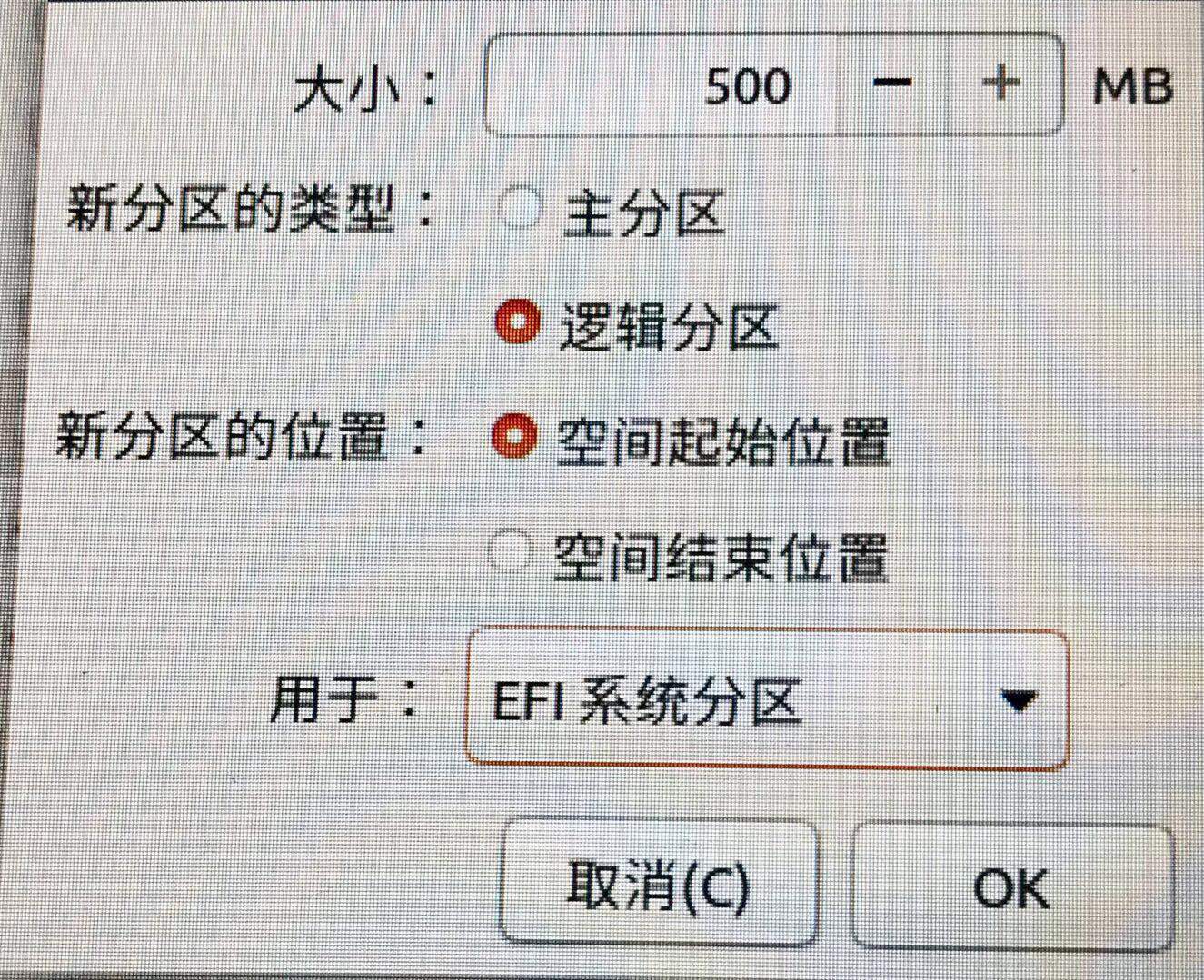 最后安装启动引导器的设备改成你刚刚分配efi系统引导分区的那个分区.