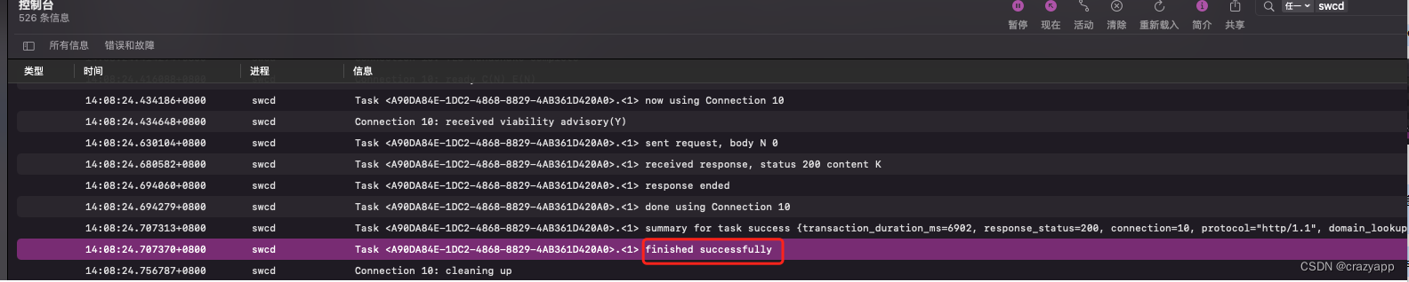 这里介绍一个很强大的工具。 Xcode中的控制台,以xcode13.4.1为例:在window-devices and simulators中选择连接的设备,然后在设备信息右边点击open console。可以跟踪应用启动的时候通用链接配置文件是否下载成功。如果发现该信息说明已经下载成功,通用链接功能正常。如图: