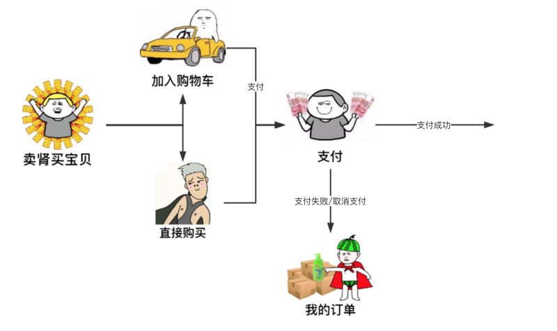 用户交易将经历一段艰辛的历程,一般用户感觉不到,实际程序是经历了一段生死离别。具体付款流程如下