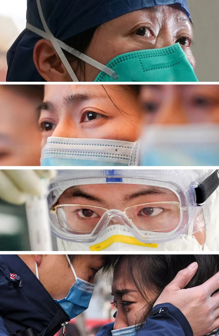 在抗击新冠疫情的前线,医护人员的眼睛成为了传递希望与力量的窗口。从华中科技大学附属协和医院的周琼教授到上海援鄂医疗队成员,再到新疆医科大学第一附属医院的吕俊夫妇,以及武汉金域医学公司的核酸检测员刘杰,他们的眼睛见证了责任、担忧、不舍与坚持。这些眼神背后,是无数患者的康复希望和新生的期待。