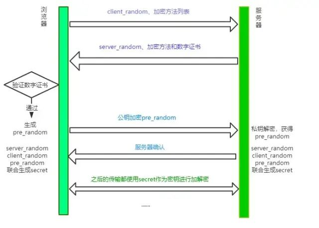 server_random、加密方法以及公钥。浏览器接收,接着生成另一个随机数