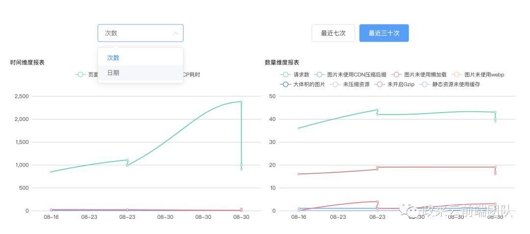 除了开发新的功能,我们还积极地对老页面进行重构,为了分析重构前后的收益,我们还提供了查询历史数据和变化趋势的功能: