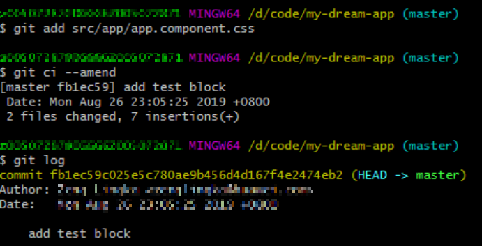 还有一种场景可能更加常见,没有遗漏的文件,只是提交信息里有一个单词写错了,可以使用以下命令进行修补: