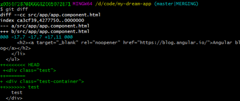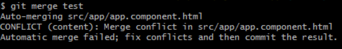 两个分支改了同一个文件的同一个地方,合并时将出现冲突: