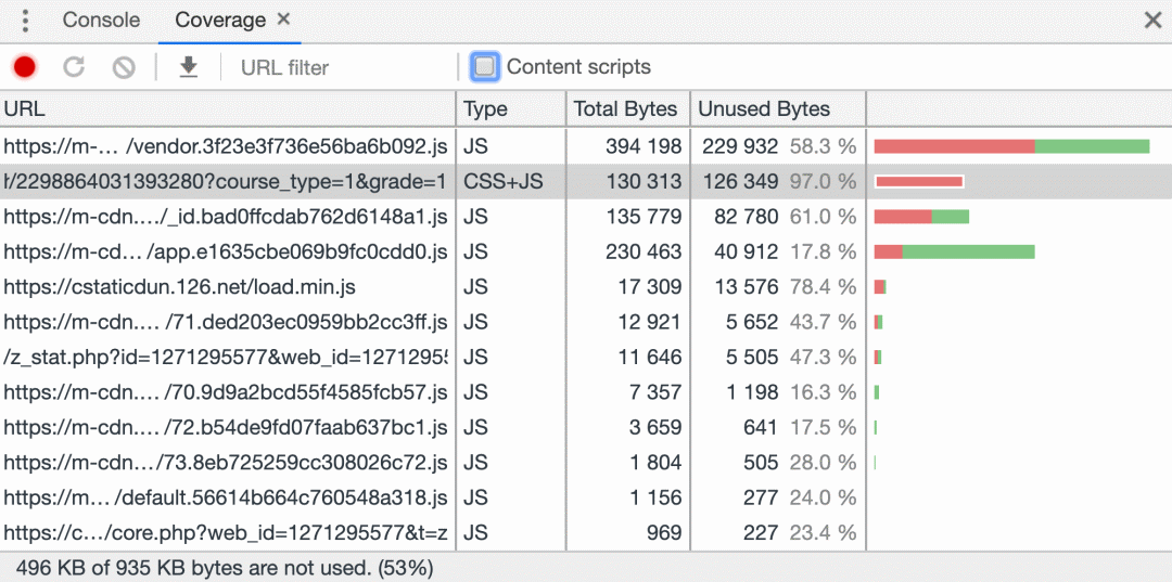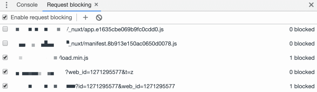 对于项目中不确定是否有用的资源,我们可以使用 Block Request URL 来排除。