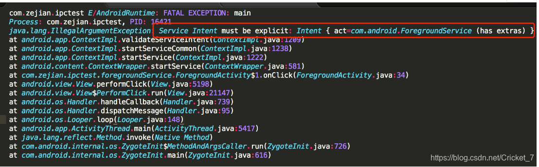 Android 5.0之后google出于安全的角度禁止了隐式声明Intent来启动Service。如果使用隐式启动Service,会出没有指明Intent的错误,如下: