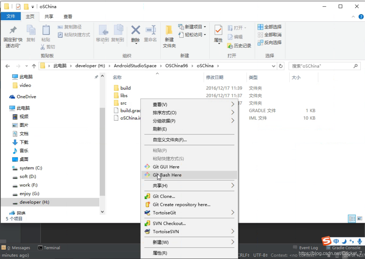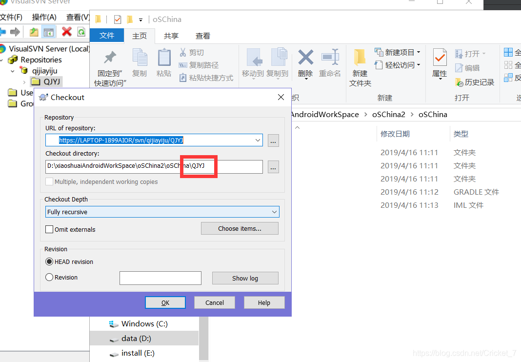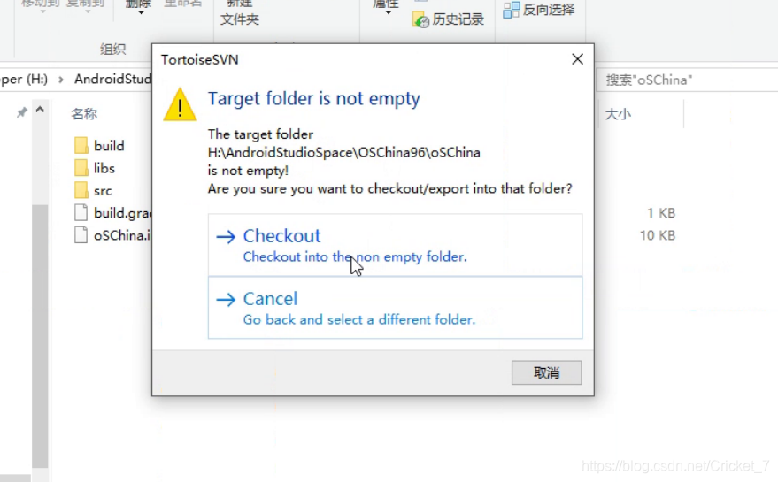 Checkout 添加。发现我们当前目录下多了一个oSChina 文件,进行删除