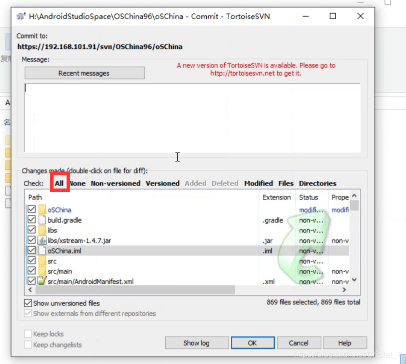 本文介绍了如何在Android Studio中创建项目并关联SVN仓库。首先,通过Android Studio新建空项目并导入资源。然后,在SVN仓库中创建文件夹并获取URL。使用TortoiseSVN进行Checkout,解决非空目录问题和IP认证。接着,设置忽略项,提交需要版本控制的代码并添加注释。最后,成功提交更新。